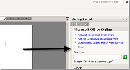 Are you tired of seeing the "Getting Started" Window Pane in Microsoft Word each and every time you start Word? You can turn it off. From the Tools menu, Select Options, then uncheck Startup Task Pane.